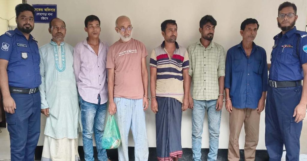 আটককৃতরা হলেন, উপজেলার সদর ইউনিয়নের জমিদারপাড়ার বাসিন্দা সেকান্দার আলীর পুত্র ও উপজেলা মৎস্যজীবি লীগের সভাপতি হারুনুর রশিদ রাসু(৫৮),একই ইউনিয়নের ওয়ার্ড মজিদের পাড়ার খায়ের আহমদের পুত্র জসিম(৪৫), চুনতি ইউনিয়নের ৩ নং ওয়ার্ড আদর্শ পাড়ার মোহাম্মদ আলীর পুত্র এনামুল হক(৩৩), একই ইউনিয়নের ৪ নং ওয়ার্ড নলবুনিয়া এলাকার মৃত নুরুল ইসলামের পুত্র মোহাম্মদ হাফেজ(৪৫), কলাউজান ইউনিয়নের ৩ নং ওয়ার্ড আদার চর এলাকার চিত্ত রঞ্জন সিকদারের পুত্র প্রমিদ কান্তি সিকদার(৫০), অপরজন হলেন উপজেলার চুনতি ইউনিয়নের ১ নং ওয়ার্ডের মিরিখিল এলাকার মৃত মোহাম্মদ ইলিয়াছের পুত্র মোহাম্মদ আলম(২৩)।